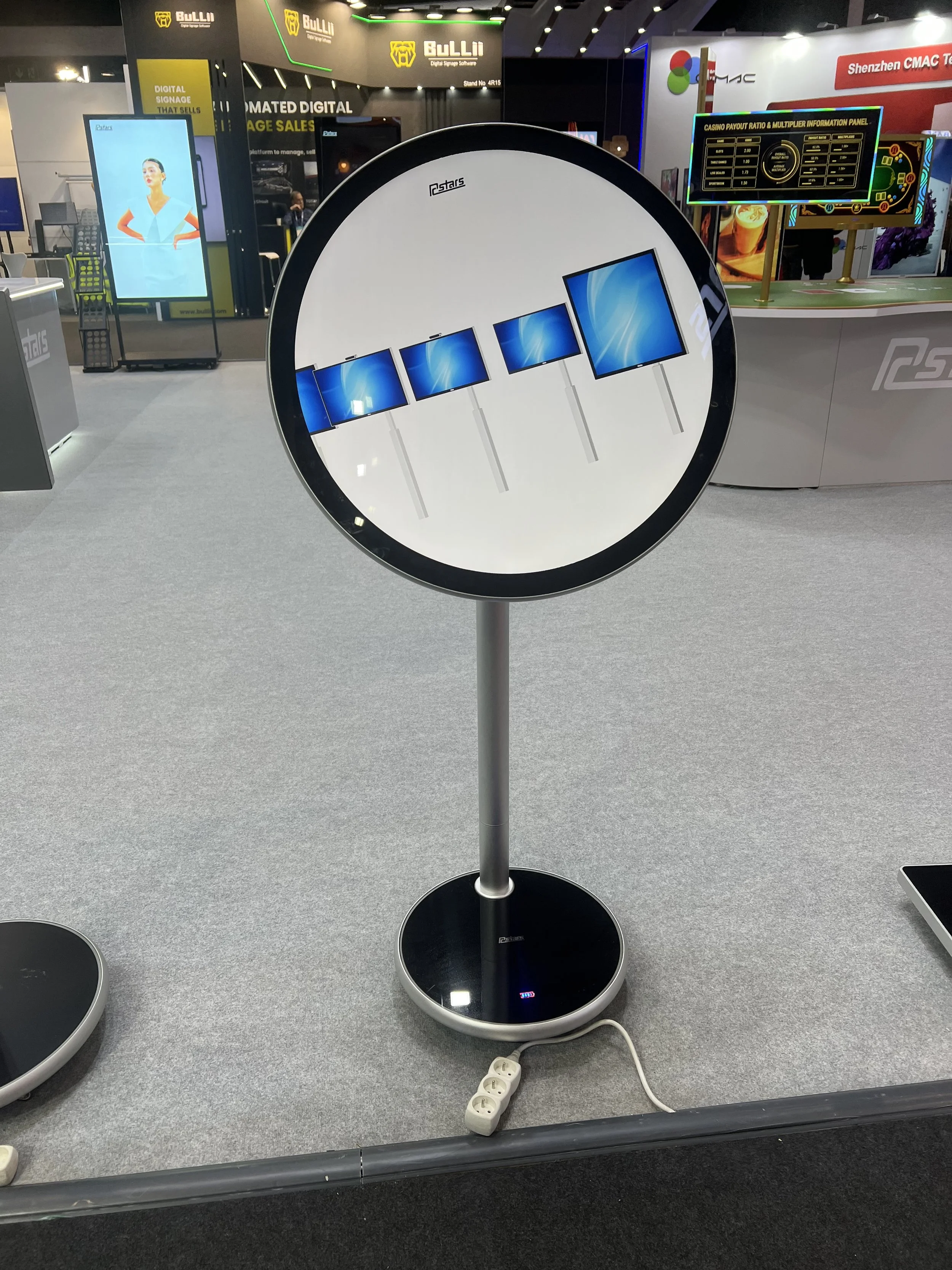 I can’t help but love the custom shape LCD market: skinny, round, long and wide… every shape in every way! These battery powered round units run a whole day on a single charge…